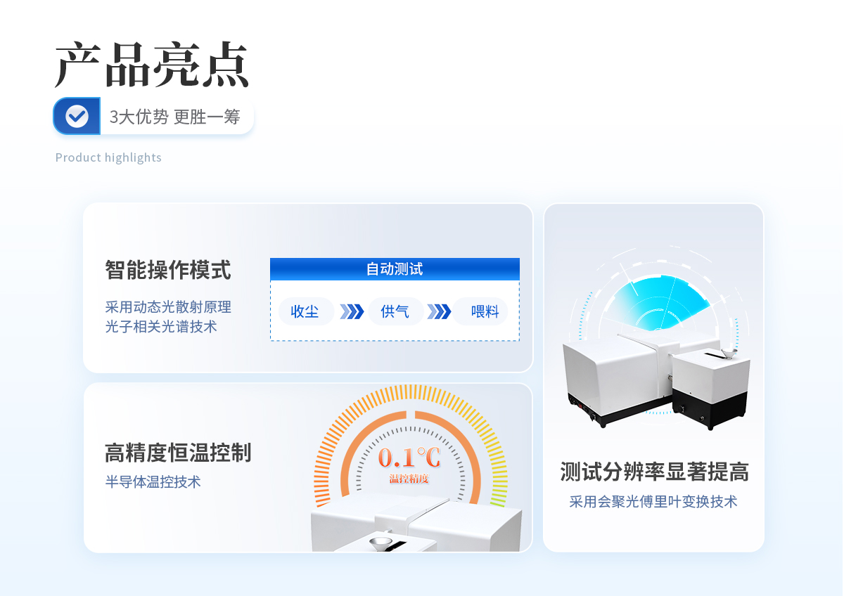 | 光路設(shè)計 采用會聚光傅立葉變換技術(shù),使散射光不受透鏡孔徑限制;采用雙譜面光路設(shè)計,有效擴大測量范圍至2000微米;獨創(chuàng)雙激光正交光路使用半導(dǎo)體輔助激光器測量側(cè)向散射0.0155度至164度,將測量范圍進(jìn)一步擴展。 | 量程擴大 測試范圍下限顯著擴大到0.01um,特別適合樣品顆粒度小的用戶,對亞微米顆粒的測試效果達(dá)到國際水準(zhǔn)。 | 全內(nèi)置分散系統(tǒng) 將超聲分散、機械攪拌、循環(huán)通道合理的集成于儀器內(nèi)部,保證顆粒測試過程中的均勻分散和分布,有效地避免了外置分散系統(tǒng)因管路長而導(dǎo)致的顆粒分布不均勻、大顆粒沉積等現(xiàn)象,保證了測試結(jié)果的準(zhǔn)確性。 | 智能操作模式 具有智能化全自動操作模式,實現(xiàn)一鍵測試,即只要根據(jù)提示加入樣品,點擊“自動測試”,所有操作過程包括進(jìn)水、分散、循環(huán)、測試、清洗、數(shù)據(jù)記錄、數(shù)據(jù)分析、保存及打印等全部自動完成,不僅減輕了測試人員的工作量,而且消除了人為因素的干擾誤差,進(jìn)一步提高了測試的精度和結(jié)果的真實性。 | 全自動對中系統(tǒng) 采用精密四項混合式步進(jìn)電機組成光路自動對中系統(tǒng),微動精度達(dá)到0.1um,使儀器光路始終處于**狀態(tài),在消除手動對中光路所帶來的麻煩和困難的同時也提升了測試結(jié)果的準(zhǔn)確性和穩(wěn)定性。 | 權(quán)威的校準(zhǔn)方式 在整個測試范圍內(nèi)采用國家粒度標(biāo)準(zhǔn)物質(zhì)連續(xù)進(jìn)行校準(zhǔn),只需一年標(biāo)定一次儀器就可以。校準(zhǔn)方式簡單快捷。 | 無約束自由擬合技術(shù) 無約束自由擬合技術(shù),粒度分析不受任何函數(shù)限制,可真實的反映顆粒的分布狀態(tài) |