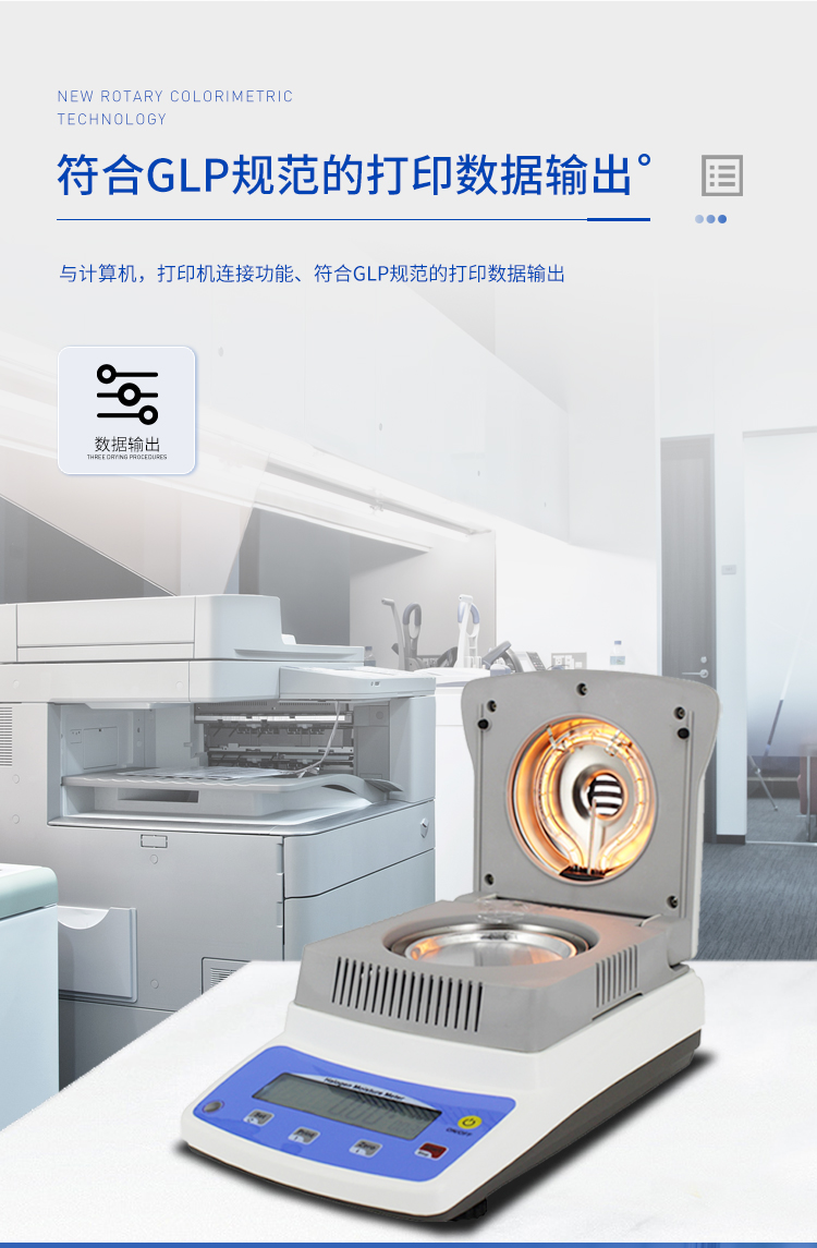 環(huán)狀的鹵素?zé)舸_保樣品得到均勻加熱,操作簡(jiǎn)便、測(cè)量準(zhǔn)確。鹵素水分測(cè)定儀在測(cè)量樣品重量的同時(shí),儀器采用環(huán)形管鹵素加熱方式,快速干燥樣品,在干燥過(guò)程中,水分儀持續(xù)測(cè)量并即時(shí)顯示樣品丟失的水分含量%,干燥程序完成后,*終測(cè)定的水分含量值被鎖定顯示。與國(guó)際烘箱加熱法相比,鹵素加熱可以在高溫下將樣品均勻地快速干燥,樣品表面不易受損,其檢測(cè)結(jié)果與國(guó)標(biāo)烘箱法具有良好的一致性,具有可替代性,且檢測(cè)效率遠(yuǎn)遠(yuǎn)高于烘箱法。智能化操作,一般樣品只需幾分鐘即可完成測(cè)定。該儀器操作簡(jiǎn)單,測(cè)試準(zhǔn)確,顯示部分采用液晶顯示屏-使屏幕更加清晰明亮,示值清晰可見(jiàn),分別可顯示水分值,樣品初值,終值,測(cè)定時(shí)間,溫度初值,*終值等數(shù)據(jù),并具有與計(jì)算機(jī),打印機(jī)連接功能、符合GLP規(guī)范的打印數(shù)據(jù)輸出。