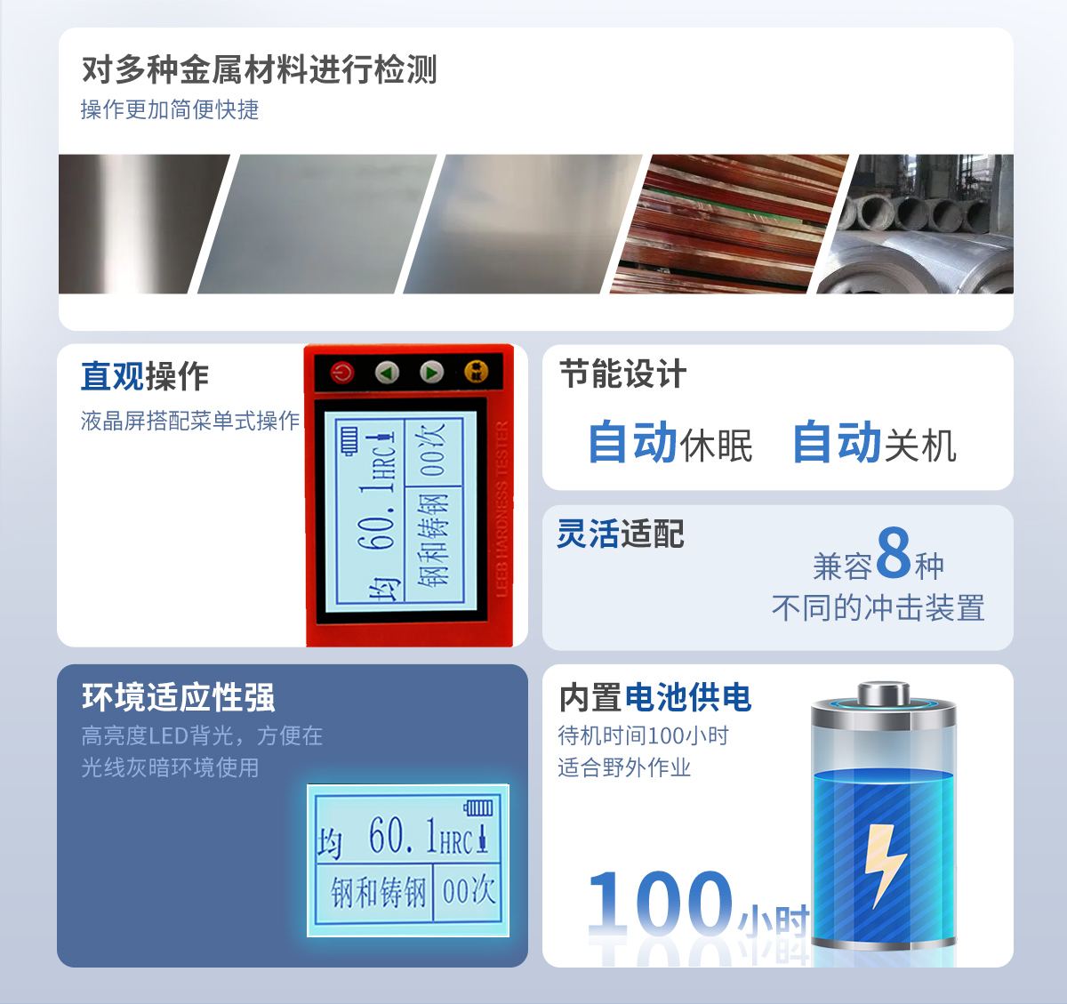 ● 依據(jù)里氏硬度測量原理,可以對多種金屬材料進行檢測,測值準(zhǔn)確穩(wěn)定;
