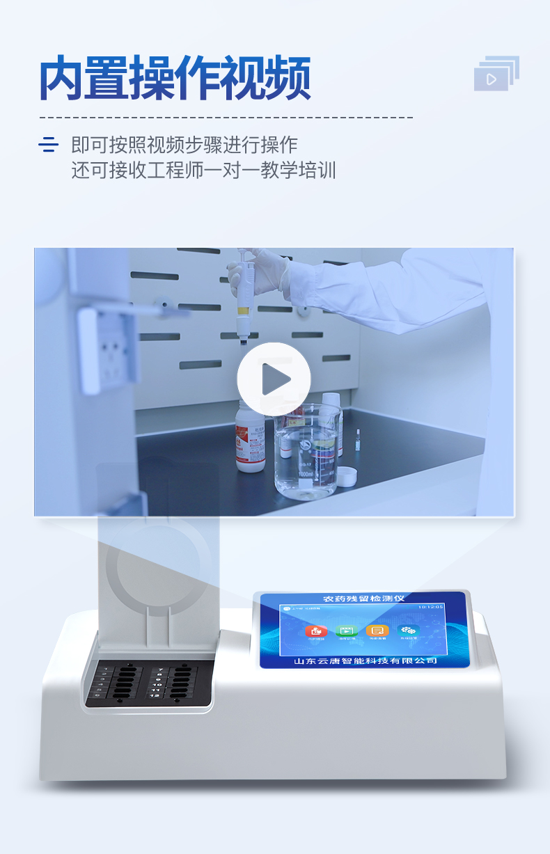 | 乙酰膽堿酯酶和丁酰膽堿酯酶試劑均可以使用,符合國(guó)家標(biāo)準(zhǔn)和農(nóng)業(yè)部標(biāo)準(zhǔn)的要求。 | 自動(dòng)判斷樣品是否合格,檢測(cè)結(jié)果更加直觀。 | 儀器具有100多種蔬菜名稱菜單庫(kù),分類管理,并可按需添加或刪除蔬菜名,編輯蔬菜名稱,可直接打印出蔬菜名稱。 | 檢測(cè)通道:10個(gè)檢測(cè)通道,可以同時(shí)測(cè)試多個(gè)樣品,循環(huán)檢測(cè),即放即檢,每個(gè)樣品由程序控制分別獨(dú)立工作,不會(huì)互相干擾。 | 智能操作系統(tǒng),采用更加人性化操作,主控采用多核處理器,主頻1.88Ghz,運(yùn)轉(zhuǎn)速度更快速,穩(wěn)定性更強(qiáng)。 | 顯示方式:7英寸高靈敏真彩觸摸屏顯示,人性化中文操作界面,讀數(shù)直觀、簡(jiǎn)單。 | 打印機(jī)采用串口5v打印,可選擇手動(dòng)打印或者自動(dòng)打印,三分鐘出打印結(jié)果,打印格式為檢測(cè)人姓名、吸光度差值、檢測(cè)時(shí)間、檢測(cè)機(jī)構(gòu)、樣品名稱及結(jié)果判定。 | 光源采用進(jìn)口超高亮發(fā)光二極管,具有低功耗、高精度、穩(wěn)定性強(qiáng)、光源可控可以關(guān)掉不使用的光源,響應(yīng)速度快等優(yōu)點(diǎn)。 | 智能恒流穩(wěn)壓,光強(qiáng)自動(dòng)校準(zhǔn),長(zhǎng)時(shí)間連續(xù)工作光源無(wú)溫漂現(xiàn)象。 | 儀器具有GPRS遠(yuǎn)傳功能,可插手機(jī)卡實(shí)現(xiàn)數(shù)據(jù)遠(yuǎn)傳平臺(tái),wifi聯(lián)網(wǎng)功能,可將數(shù)據(jù)快速上傳電腦,進(jìn)行數(shù)據(jù)管理與統(tǒng)計(jì)。 | 采用USB2.0接口設(shè)計(jì),方便數(shù)據(jù)的存貯和移動(dòng),并可隨時(shí)與計(jì)算機(jī)直接相連,并且可用計(jì)算機(jī)控制儀器。實(shí)現(xiàn)數(shù)據(jù)查詢、瀏覽、分析、統(tǒng)計(jì)、打印等。 | 智能化程度高,儀器具有自檢功能:具有開(kāi)機(jī)自檢和調(diào)零功能,具有自動(dòng)檢測(cè)重復(fù)性功能 | 儀器具有自身保護(hù)功能,可設(shè)置用戶名及密碼,防止非工作人員操作等。 | 采用DC12v直流供電,安全系統(tǒng)更高,并且配備6A鋰電池充電器。 | 儀器具有重新校準(zhǔn)、鎖定、恢復(fù)出廠設(shè)置功能。 |