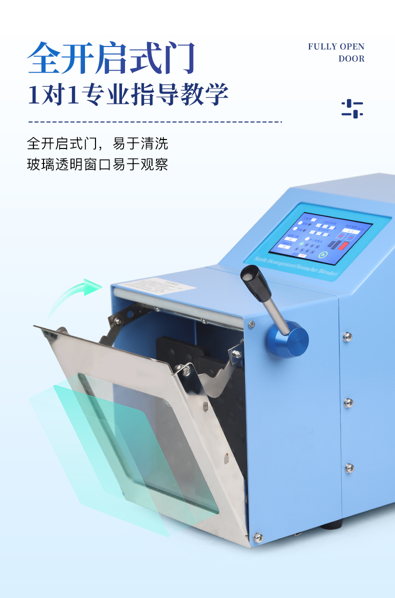 ●5英寸液晶顯示屏。 ●可儲(chǔ)存三組工作程序。 ●可調(diào)整的均質(zhì)時(shí)間。 ●均質(zhì)速度可調(diào)節(jié)或固定。 ●拍擊器可調(diào)整前后距離。 ●無菌一次性濾袋,保證衛(wèi)生。 ●全開啟式門,易于清洗。 ●玻璃透明窗口易于觀察 。 ●樣品與均質(zhì)儀無接觸,如無樣品泄露則不需進(jìn)行系統(tǒng)清洗. ●均質(zhì)柔和、樣品零污染、無損傷、不升溫、不需要滅菌處理,不需洗刷器皿。