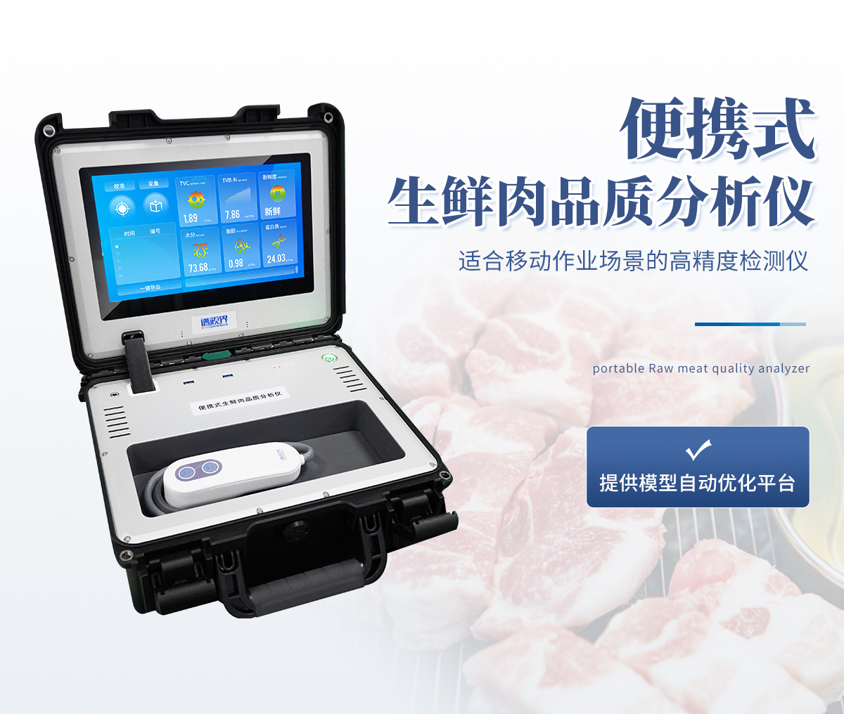 生鮮肉品質(zhì)檢測(cè)儀,其可用于生鮮肉及肉品生產(chǎn)、加工、儲(chǔ)運(yùn)企業(yè)、肉品品質(zhì)監(jiān)管部門等。