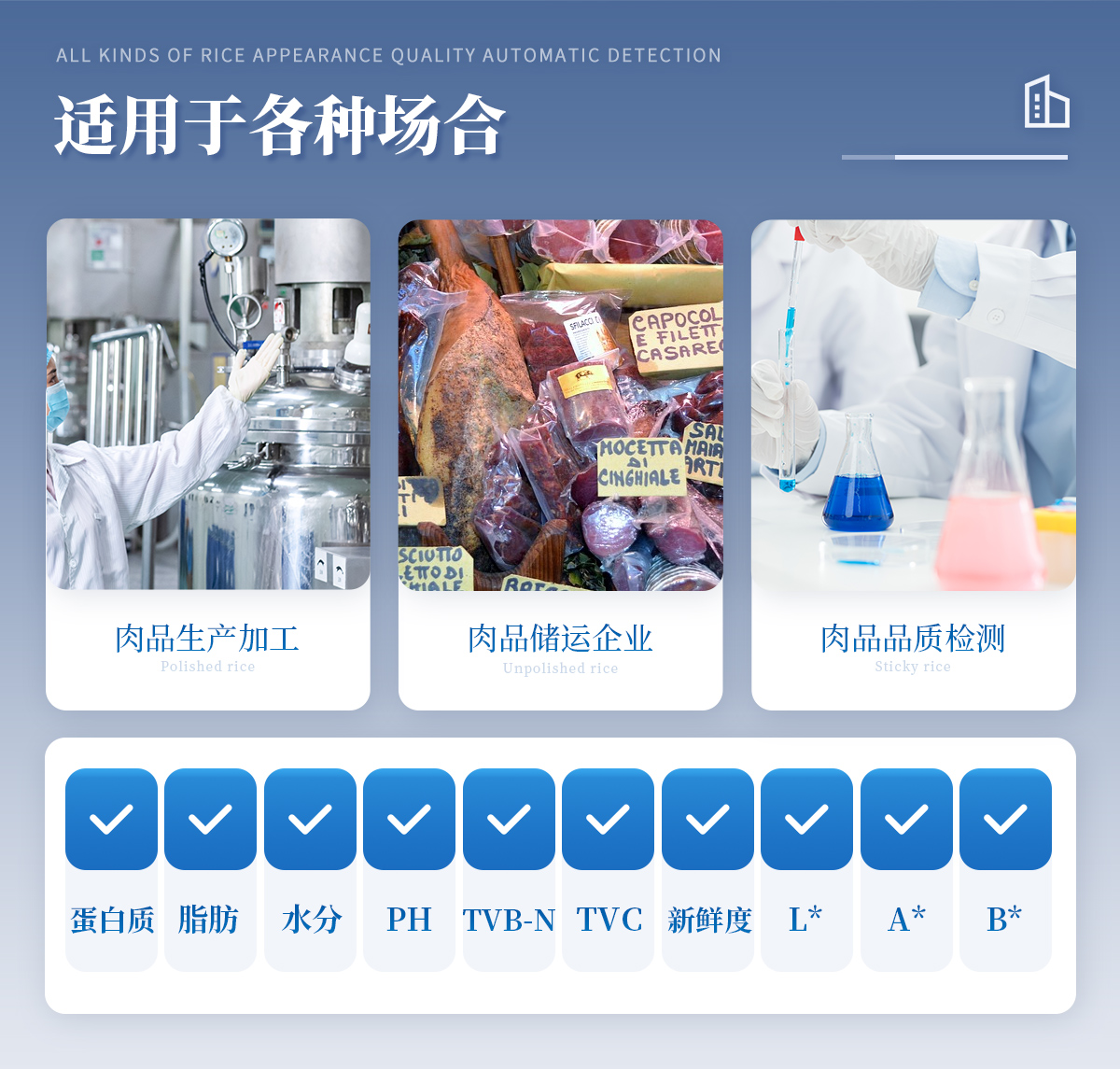 1. ※檢測(cè)指標(biāo):蛋白質(zhì)、脂肪、水分、PH、TVB-N、新鮮度、L*、A*、B*