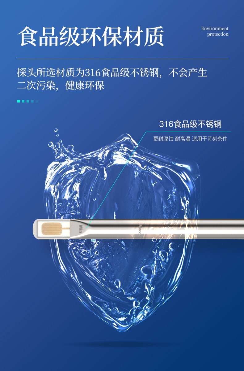 ■沒有二次污染 探頭所選材質均為食品級環(huán)保材質,不會產生二次污染