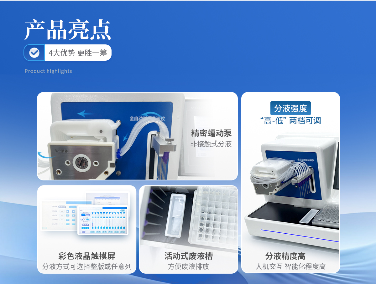 全自動(dòng)微量分液儀(以下簡(jiǎn)稱“分液儀”)是一種配備高精度蠕動(dòng)泵的分液設(shè)備,能夠快速、**、一致的完成自動(dòng)化分液操作??蓮V泛應(yīng)用于疾控篩查、食品檢測(cè)、動(dòng)物檢疫、生命科學(xué)研究等領(lǐng)域。解放實(shí)驗(yàn)員雙手,在提**率的同時(shí)避免錯(cuò)誤。