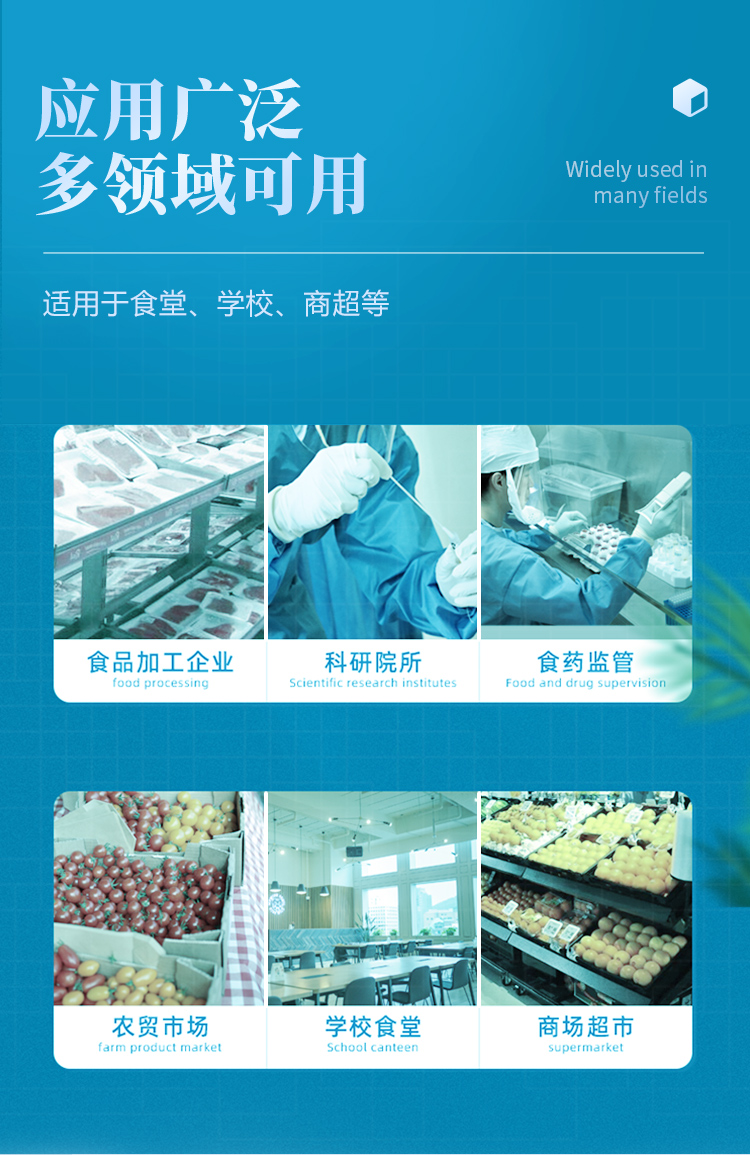 安卓智能操作系統(tǒng),采用更加**和人性化操作,儀器具有無(wú)線聯(lián)網(wǎng)上傳功能,快速上傳數(shù)據(jù),進(jìn)行數(shù)據(jù)統(tǒng)計(jì)和分析。智能化程度高,儀器具有自檢功能:具有開(kāi)機(jī)自檢和調(diào)零功能,具有自動(dòng)檢測(cè)重復(fù)性功能;同時(shí),檢測(cè)完成可自動(dòng)打印檢測(cè)報(bào)告和二維碼。手機(jī)掃碼可顯示出詳細(xì)檢測(cè)信息。儀器帶有監(jiān)管平臺(tái),數(shù)據(jù)可局域網(wǎng)和互聯(lián)網(wǎng)數(shù)據(jù)上傳,檢測(cè)結(jié)果直接傳至食品安全監(jiān)管平臺(tái)。進(jìn)行區(qū)域食品安全監(jiān)管及大數(shù)據(jù)分析處理與數(shù)據(jù)統(tǒng)計(jì),檢測(cè)區(qū)域食品安全長(zhǎng)短期動(dòng)態(tài),達(dá)到食品安全問(wèn)題預(yù)估、預(yù)警 。樣品處理簡(jiǎn)單省力,整體操作快速、安全、便捷。儀器具有自身保護(hù)功能,可設(shè)置用戶名及密碼,防止非工作人員操作等。內(nèi)置強(qiáng)大的數(shù)據(jù)庫(kù),可在儀器上直接選擇樣品名稱(chēng)、檢測(cè)指標(biāo)、送檢單位等信息,也可在儀器上直接編輯錄入樣品名稱(chēng)、檢測(cè)指標(biāo)、送檢單位等信息并保存進(jìn)樣品數(shù)據(jù)庫(kù),方便后期操作調(diào)取使用。儀器具有重新校準(zhǔn)、鎖定、恢復(fù)出廠設(shè)置功能。