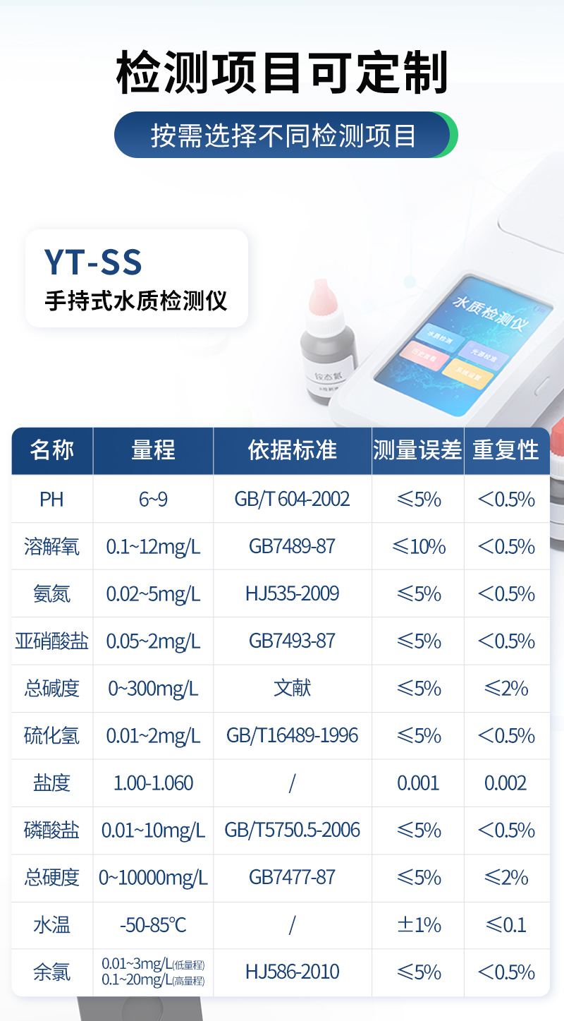 適用于純凈水廠、自來水廠、生活污水處理廠、工業(yè)污水、水產(chǎn)養(yǎng)殖、河流監(jiān)測、游泳場館、水源保護、生產(chǎn)監(jiān)測、科研實驗等。
