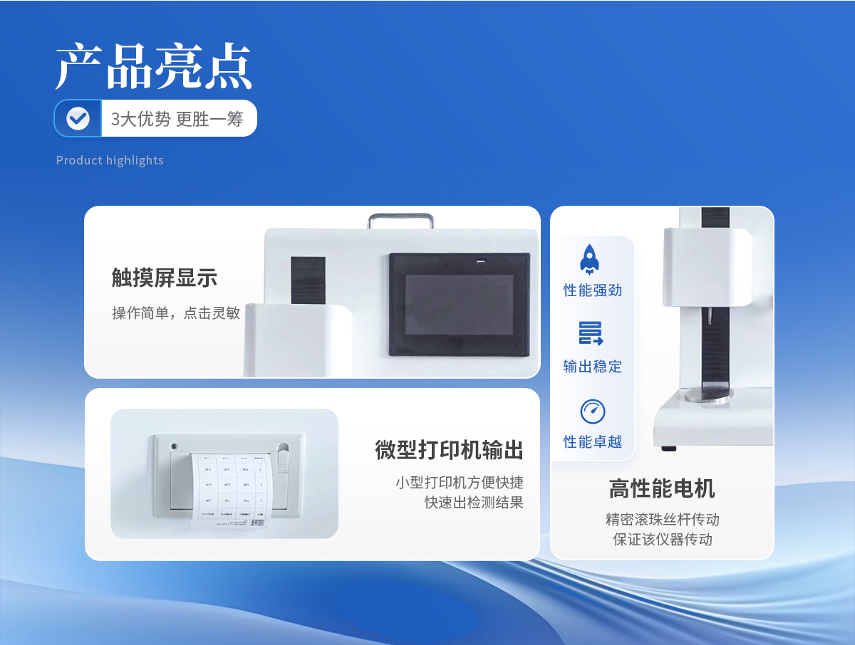 1、采用芯片控制,高精度測力傳感器,精度高。 2、采用高性能電機(jī),滾珠絲桿傳動(dòng),保證該儀器傳動(dòng)。 3、大觸摸屏中文顯示,友好人機(jī)界面操作。全自動(dòng)完成測試。操作方便,具有測試數(shù)據(jù)統(tǒng)計(jì)處理功能,微型打印機(jī)輸出。