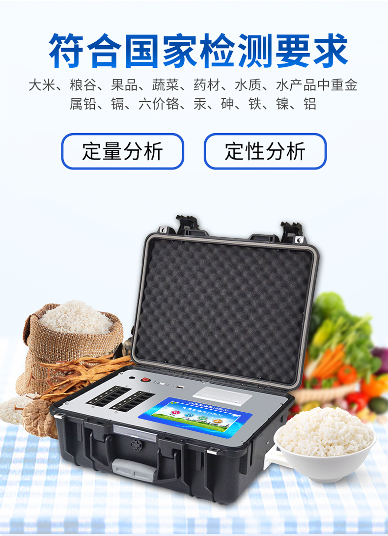 重金屬檢測儀可廣泛應(yīng)用于大米、糧谷、果品、蔬菜、藥材、水質(zhì)、水產(chǎn)品中重金屬鉛、鎘、六價(jià)鉻、汞、砷、鐵、鎳、鋁的快速檢測,檢測項(xiàng)目可根據(jù)客戶的需求定制。