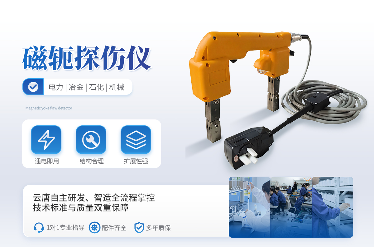 YT-CTS-N型電磁軛磁粉探傷儀,無(wú)主機(jī)設(shè)計(jì),采用逆變交流鋰電池供電,無(wú)需外接電源即可產(chǎn)生交流磁場(chǎng)。核心部分采用單片機(jī)控制,輸出**、穩(wěn)定??筛鶕?jù)工件的厚度自動(dòng)調(diào)整輸出電流,減少了開(kāi)環(huán)電流大和發(fā)熱的問(wèn)題 。輸出功率強(qiáng)勁,檢測(cè)靈敏度高,操作方便,結(jié)構(gòu)緊湊、布局合理、體積小巧、重量輕、攜帶方便等特點(diǎn)。