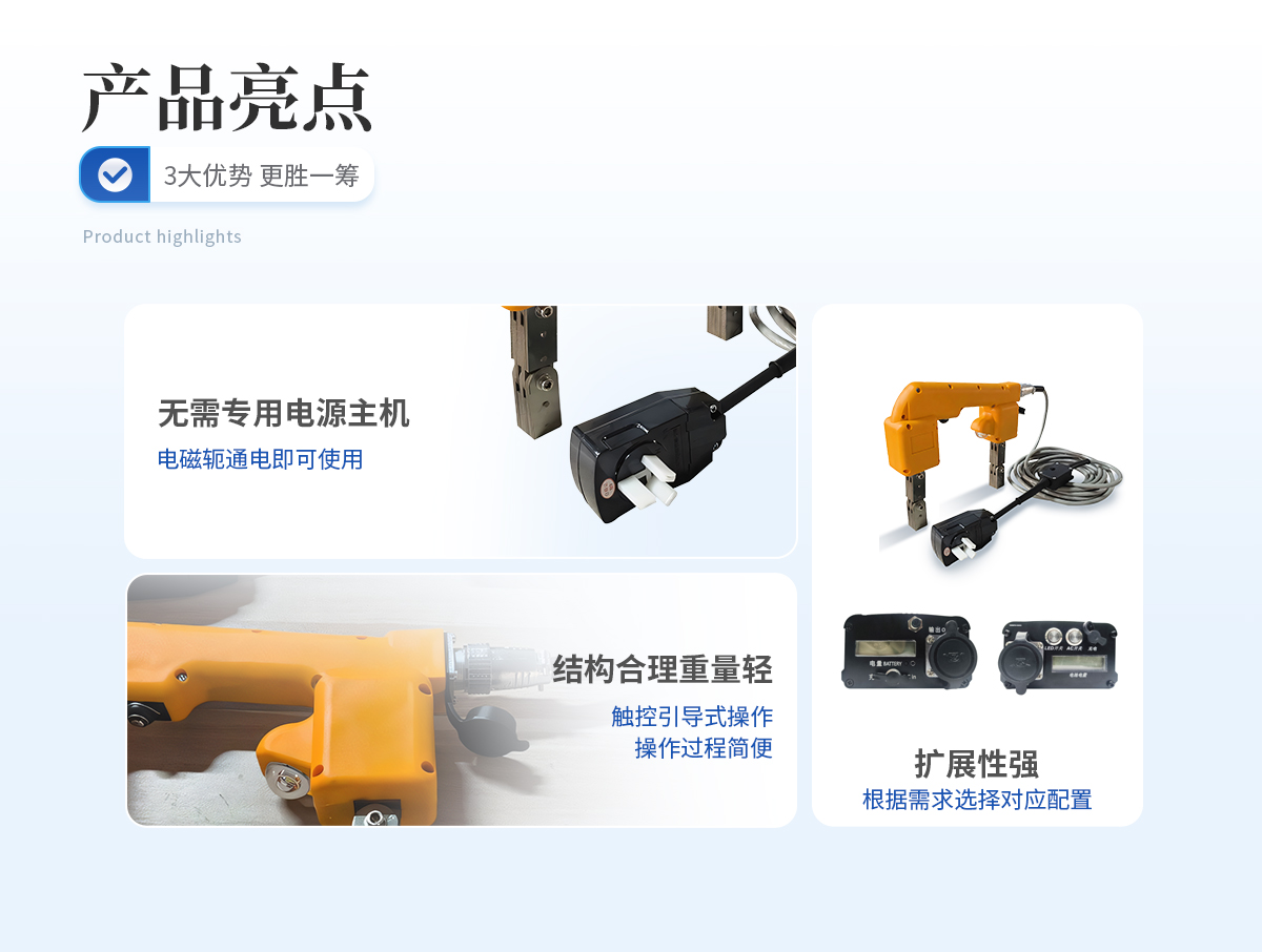 | 1、 無(wú)需專用電源主機(jī),電磁軛通電即可使用; | 2、 體積小巧,重量輕; | 3、 開(kāi)模制作,結(jié)構(gòu)合理,手感舒適; | 4、 配專用儀器箱,電源配專用工作腰包 | 5、 逆變交流鋰電池可滿足不方便拖電源線,且需要采用交流磁化的的場(chǎng)所使用。 |