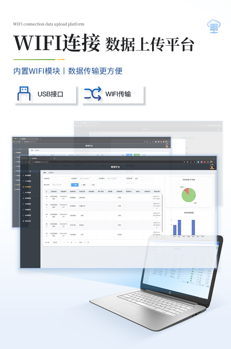 8.3、數(shù)據(jù)監(jiān)管系統(tǒng):同步對(duì)接監(jiān)管平臺(tái),數(shù)據(jù)可局域網(wǎng)和互聯(lián)網(wǎng)數(shù)據(jù)上傳,檢測結(jié)果可選擇直接傳至食品安全監(jiān)管平臺(tái)。進(jìn)行區(qū)域食品安全監(jiān)管及大數(shù)據(jù)分析處理與數(shù)據(jù)統(tǒng)計(jì),檢測區(qū)域食品安全長短期動(dòng)態(tài),達(dá)到食品安全問題預(yù)估、預(yù)警。8.4、打印系統(tǒng):內(nèi)置全新打印機(jī),可以打?。喉?xiàng)目名稱,二維碼,抽樣信息、檢測信息,受檢信息、復(fù)核信息、抽樣日期、檢測日期等信息的打印。