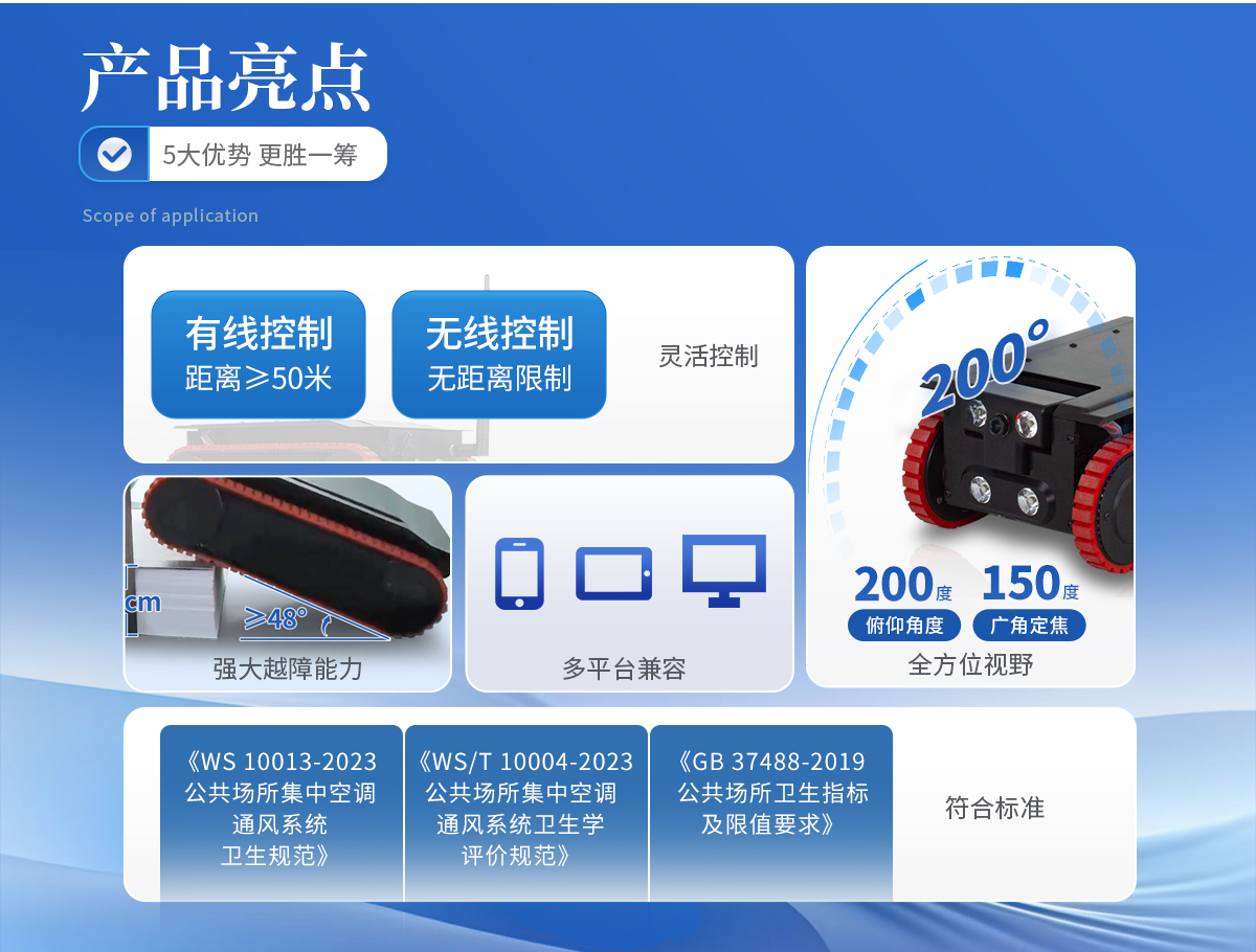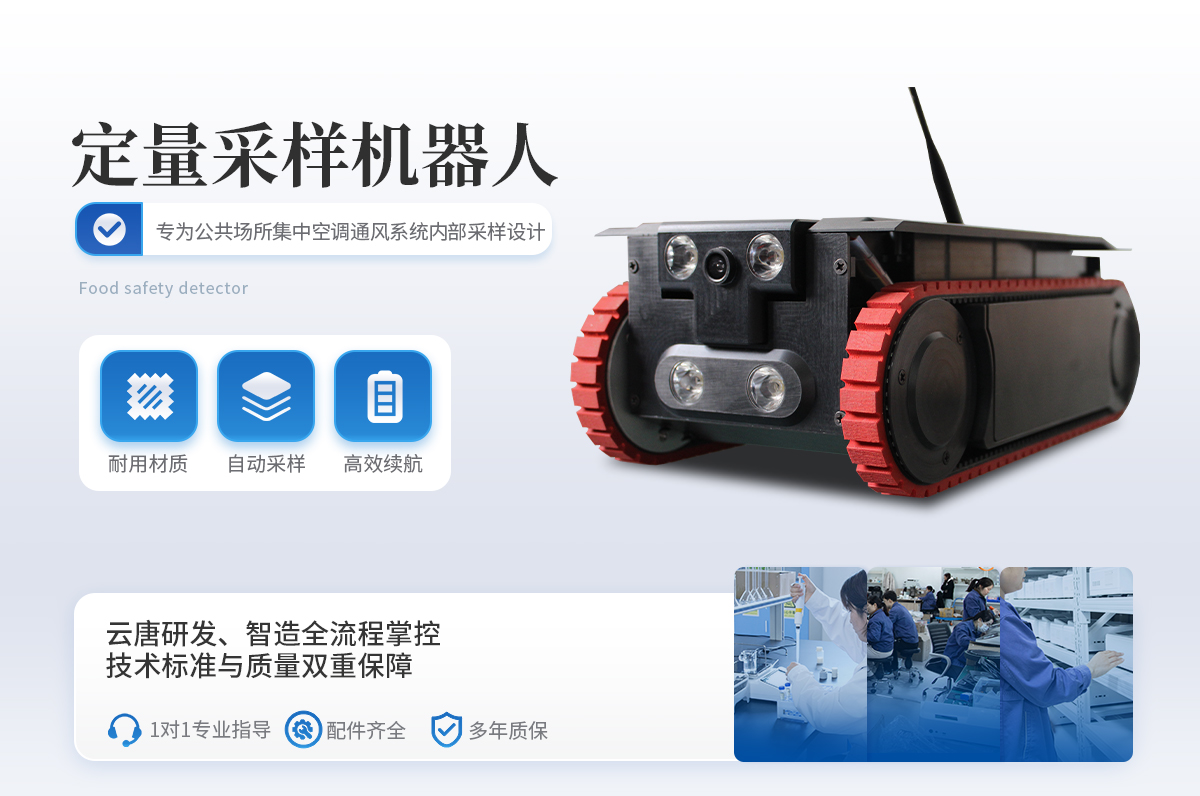 定量采樣機器人是一款專為公共場所集中空調(diào)通風(fēng)系統(tǒng)內(nèi)部采樣設(shè)計的高精度、便攜式智能設(shè)備。該產(chǎn)品嚴(yán)格按照《WS 10013-2023公共場所集中空調(diào)通風(fēng)系統(tǒng)衛(wèi)生規(guī)范》、《WS/T 10004-2023公共場所集中空調(diào)通風(fēng)系統(tǒng)衛(wèi)生學(xué)評價規(guī)范》以及《GB 37488-2019公共場所衛(wèi)生指標(biāo)及限值要求》中的相關(guān)標(biāo)準(zhǔn)進行設(shè)計與制造,確保了其在各種工業(yè)環(huán)境下的穩(wěn)定性和可靠性。它采用了**的航空鋁合金材料,結(jié)合了**的移動性能與卓越的采樣技術(shù),能夠滿足多種行業(yè)的通風(fēng)管道檢測和維護工作需求。