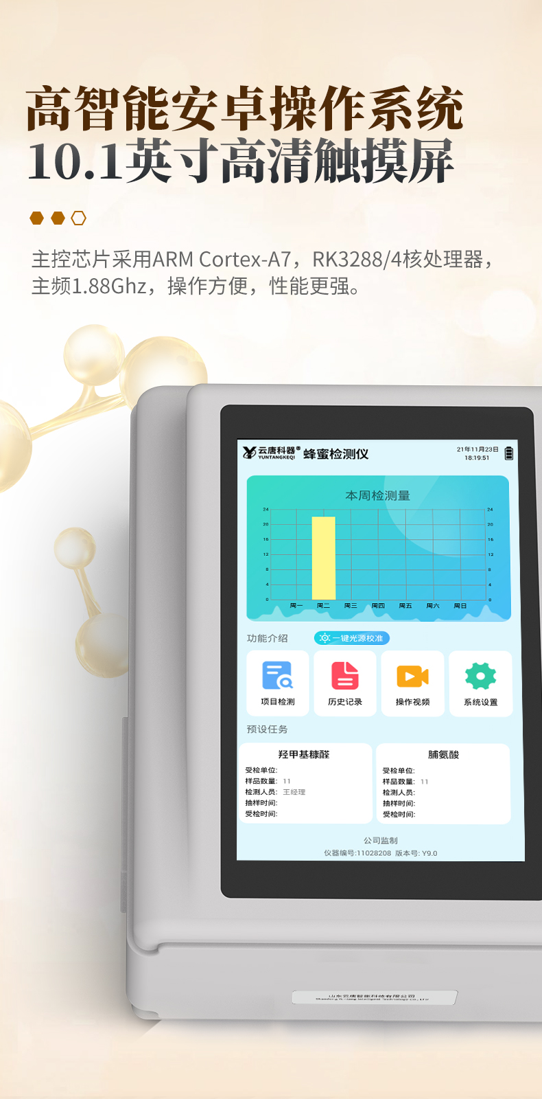 蜂蜜蔗糖、蜂蜜還原糖(葡萄糖和果糖)、蜂蜜羥甲基糠醛、蜂蜜酸度、蜂蜜中農(nóng)藥殘留、蜂蜜淀粉酶值、蜂蜜中脯氨酸、蜂蜜水分、蜂蜜糖分、蜂蜜中重金屬(鉛、鎘、汞)、蜂蜜中抗生素(氯霉素、四環(huán)素、磺胺類、呋喃類、喹諾酮類)、蜂蜜中灰分,應(yīng)用范圍:應(yīng)用于現(xiàn)場(chǎng)檢測(cè)蜂蜜蔗糖、葡萄糖和果糖、羥甲基糠醛、酸度、農(nóng)殘、淀粉酶、脯氨酸、水分、糖分、重金屬、抗生素、灰分含量的蜂蜜快速檢測(cè)儀,可廣泛應(yīng)用于各類蜂蜜品質(zhì)的快速定量檢測(cè)。