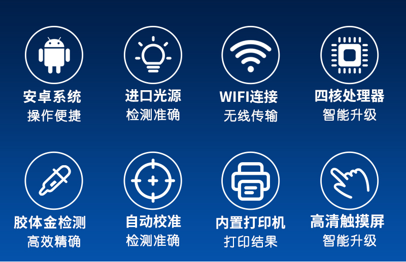 七寸彩屏全觸摸輸入,支持手寫功能支持WIFI,支持3G、4G;支持金標(biāo)項目檢測定性檢測,結(jié)果可顯示樣品陰陽性結(jié)果內(nèi)置智能操作系統(tǒng)軟件內(nèi)置大容量存儲數(shù)據(jù)庫,可隨時分類查詢已測項目;☆數(shù)據(jù)可局域網(wǎng)和互聯(lián)網(wǎng)數(shù)據(jù)上傳,可構(gòu)建食品安全監(jiān)管系統(tǒng)平臺,支持LIMS  系統(tǒng),內(nèi)置USB接口,可擴展外設(shè);☆自動精準(zhǔn)識別CT線位置,糾錯范圍可達(dá)±3mm;支持金標(biāo)項目檢測定性檢測,結(jié)果可顯示樣品陰陽性結(jié)果;檢測響應(yīng)時間:< 3S讀數(shù)精度:CV<1% ;12V低壓電源供電,便攜式設(shè)計,適合野外,車載或室內(nèi)等各種場所使用