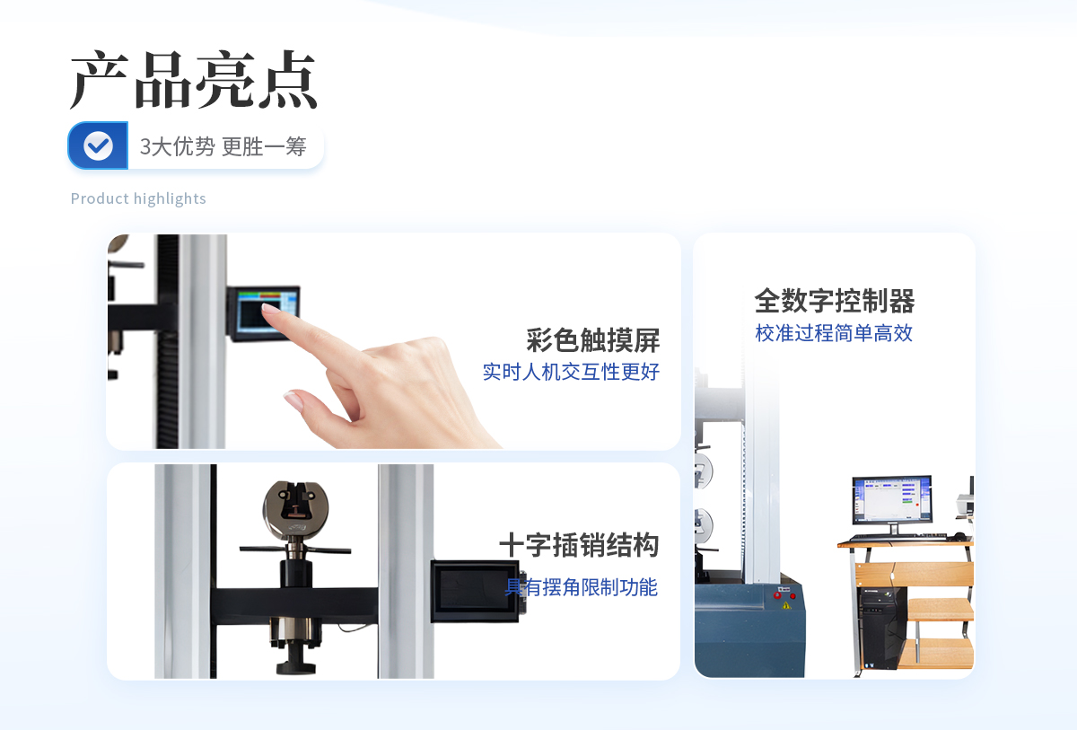 | (1)采用高精度、全數(shù)字調(diào)速系統(tǒng)及精密減速系統(tǒng),驅(qū)動精密絲杠副進(jìn)行試驗,實現(xiàn)試驗速度的大范圍調(diào)節(jié),試驗過程噪音低、運行平穩(wěn)。 | (2)可選用萬向節(jié)十字插銷結(jié)構(gòu),一方面便于試樣夾持,保證試驗同心度,另一方面很好的消除了不規(guī)則試樣對傳感器的影響。 | (3)Windows操作系統(tǒng),人性化操作界面,可顯示試驗方法選擇界面、試驗參數(shù)選擇界面、試驗操作及結(jié)果顯示界面和曲線顯示界面,并可實時顯示各參數(shù)曲線,便于試驗數(shù)據(jù)分析,過程監(jiān)控。 | (4)可實現(xiàn)試樣裝夾時橫梁快慢升降調(diào)整,具有過流、過壓、過載等保護(hù)裝置。 | (5)帶打印功能,可直接實現(xiàn)試驗過程的控制及數(shù)據(jù)的存儲、打印。 |