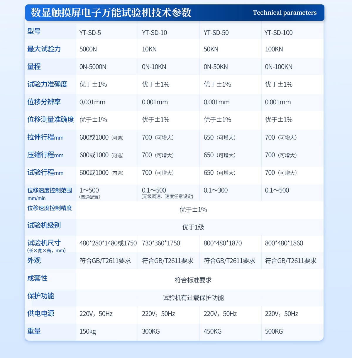 | 1、**試驗力:10KN; | 2、量 程:100N-10KN; | 3、試驗力準(zhǔn)確度;優(yōu)于±1% | 4、位移分辨率:0.001mm; | 5、位移測量準(zhǔn)確度:優(yōu)于±1%; | 6、拉伸行程:800mm | 7、壓縮行程:800mm | 8、試驗行程:800mm | 9、位移速度控制范圍: 0.1~500mm/min | 10、位移速度控制精度:優(yōu)于±1%; | 11、試驗機級別:優(yōu)于1級 | 12、試驗過程及測量、顯示、分析、控制等均由微機完成 | 13、可滿足應(yīng)力、應(yīng)變、位移等控制方式 | 14、試樣破壞后,移動橫梁自動停止移動(或自動返回初始位置) | 15、具有程控和機械兩級限位保護(hù) | 16、當(dāng)負(fù)荷超過額定值3~5%時,自動停機 | 17、試驗機尺寸:730*360*1750 mm | 18、外觀:符合GB/T2611要求 | 19、成套性:符合標(biāo)準(zhǔn)要求 | 20、保護(hù)功能:試驗機有過載、限位保護(hù)功能 | 21、供電電源:220V,50Hz,1500W | 22、重量:260KG |
