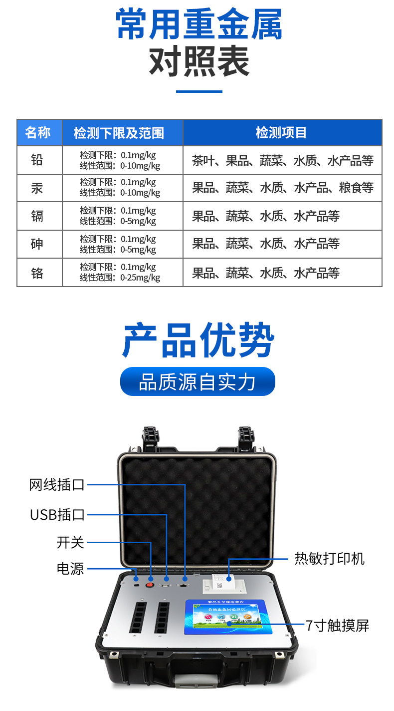 食品重金屬快速檢測儀可廣泛應(yīng)用于果品、蔬菜、水質(zhì)、水產(chǎn)品中重金屬鉛、六價(jià)鉻、汞、砷、鐵、鎳、鋁的快速檢測,檢測項(xiàng)目可根據(jù)客戶的需求定制。2025-11-07