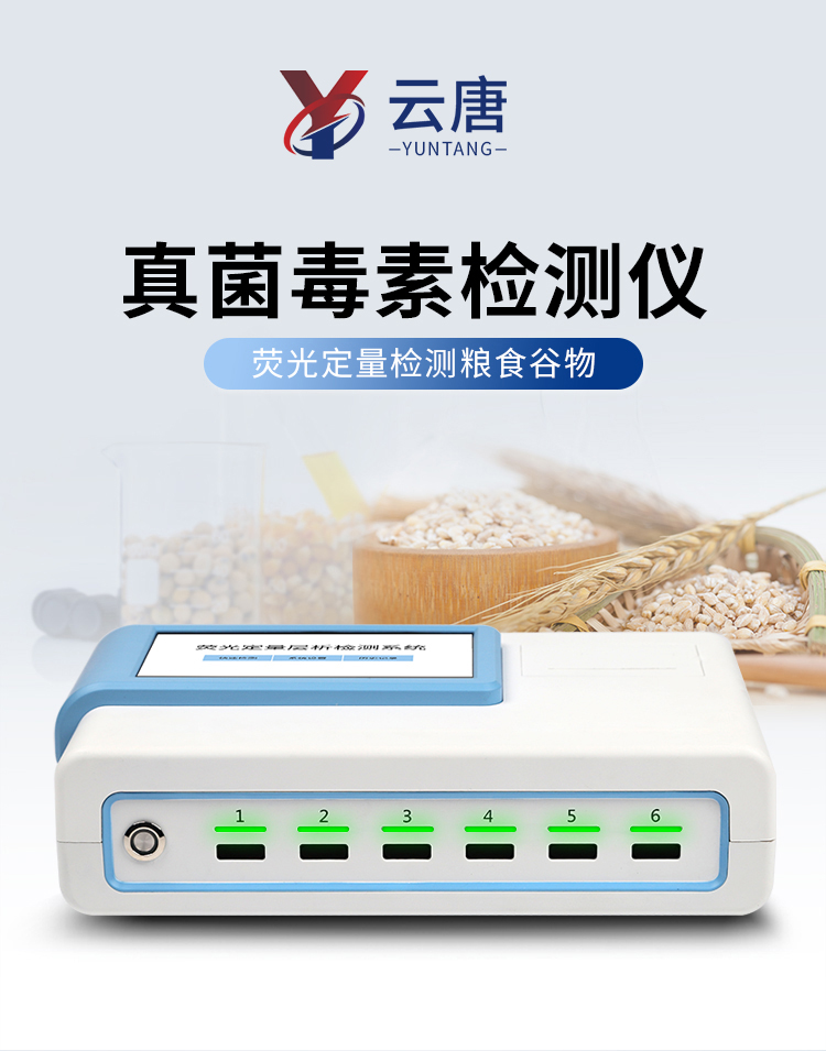 YT-L03型真菌毒素快速檢測(cè)儀采用熒光定量快速檢測(cè)原理,主要檢測(cè)糧油谷物飼料中真菌毒素含量,包括黃曲霉毒素、玉米赤霉烯酮、嘔吐毒素、伏馬毒素、赭曲霉毒素、T-2毒素等等,檢測(cè)樣品涵蓋糧食谷物(大米、玉米、小麥、大麥、高粱等)及其制品、飼料及其原料、食用油脂、牛奶及其制品等;樣品前處理簡(jiǎn)單,整個(gè)檢測(cè)過(guò)程檢測(cè)12min,產(chǎn)品適用于地方糧庫(kù)、谷物生產(chǎn)企業(yè)、飼料廠、各類(lèi)畜牧養(yǎng)殖企業(yè)、面粉廠、食品加工廠、第三方檢測(cè)機(jī)構(gòu)及各級(jí)政府監(jiān)管部門(mén)。