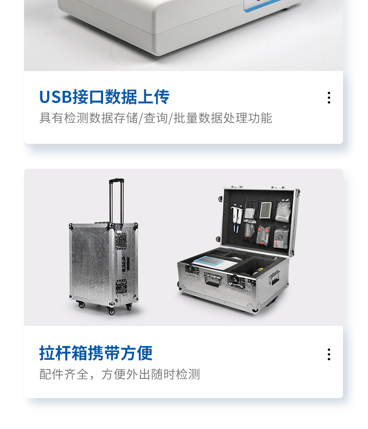 一體化設計,集成孵育和檢測功能同時進行,孵育完成直接檢測;全中文 7英寸高清液晶顯示,觸摸屏操作;Android 系統(tǒng),支持在線升級,可WIFI聯(lián)網(wǎng);檢測原理:熒光定量免疫層析法;6通道設計,可同時進行一種或多種指標的檢測,6個獨立檢測單元,檢測效率高,并且互不干擾;具有二維碼自動識別系統(tǒng),可直接識別檢測項目、檢測流程等信息;儀器自帶熱敏打印機,檢測結果可實時打??;具有檢測數(shù)據(jù)存儲(存儲數(shù)量不少于 10000 條)、查詢、批量數(shù)據(jù)處理和打印功能;儀器≥2 個USB 接口,可拷貝結果及原始數(shù)據(jù),具有 wifi 接入模塊,可通過無線連接網(wǎng) 絡實現(xiàn)數(shù)據(jù)上傳;分鐘內(nèi)達到工作狀態(tài)(37℃),封閉系統(tǒng),不受外界環(huán)境(光、熱)干擾,工作環(huán)境溫度:0-30℃;相對極差≤10%;重復性 CV≤1%;批間變異≤3%;尺寸310x210x93mm