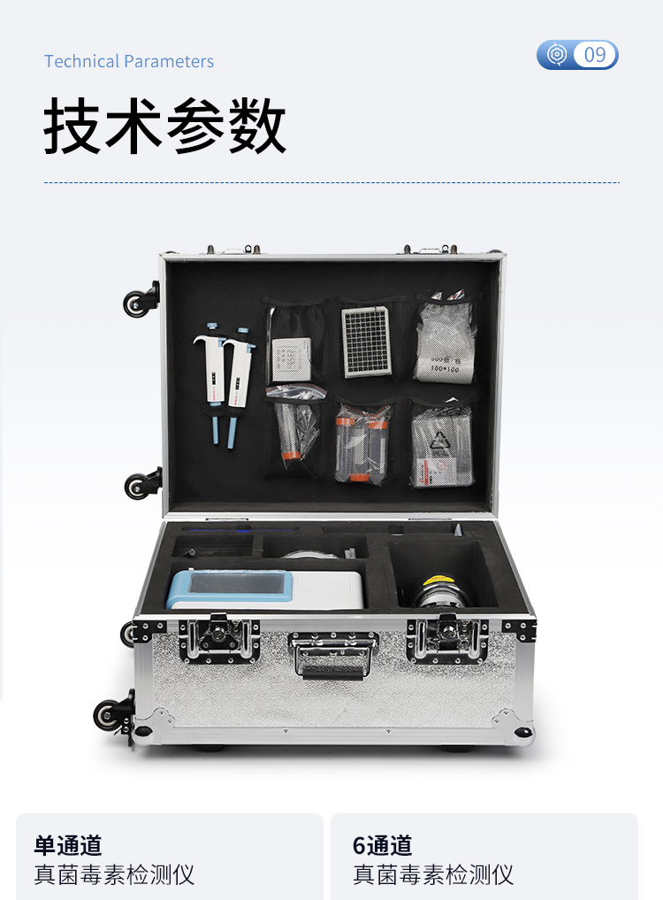 | 一體化設(shè)計(jì),集成孵育和檢測(cè)功能同時(shí)進(jìn)行,孵育完成直接檢測(cè); | 全中文 7英寸高清液晶顯示,觸摸屏操作; | Android 系統(tǒng),支持在線升級(jí),可WIFI聯(lián)網(wǎng); | 檢測(cè)原理:熒光定量免疫層析法; | 6通道設(shè)計(jì),可同時(shí)進(jìn)行一種或多種指標(biāo)的檢測(cè),6個(gè)獨(dú)立檢測(cè)單元,檢測(cè)效率高,并且互不干擾; | 具有二維碼自動(dòng)識(shí)別系統(tǒng),可直接識(shí)別檢測(cè)項(xiàng)目、檢測(cè)流程等信息; | 儀器自帶熱敏打印機(jī),檢測(cè)結(jié)果可實(shí)時(shí)打?。?/td> | 具有檢測(cè)數(shù)據(jù)存儲(chǔ)(存儲(chǔ)數(shù)量不少于 10000 條)、查詢、批量數(shù)據(jù)處理和打印功能; | 儀器≥2 個(gè)USB 接口,可拷貝結(jié)果及原始數(shù)據(jù),具有 wifi 接入模塊,可通過(guò)無(wú)線連接網(wǎng) 絡(luò)實(shí)現(xiàn)數(shù)據(jù)上傳; | 分鐘內(nèi)達(dá)到工作狀態(tài)(37℃),封閉系統(tǒng),不受外界環(huán)境(光、熱)干擾,工作環(huán)境溫度:0-30℃; | 真菌毒素和重金屬可同時(shí)進(jìn)行前處理,并同時(shí)上機(jī)檢測(cè); | 儀器配備全套前處理設(shè)備,拉桿箱設(shè)計(jì),即可用于實(shí)驗(yàn)室檢測(cè)可以外出攜帶檢測(cè) | 相對(duì)極差≤10%; | 重復(fù)性 CV≤1%; | 批間變異≤3%; | 尺寸310x210x93mm |